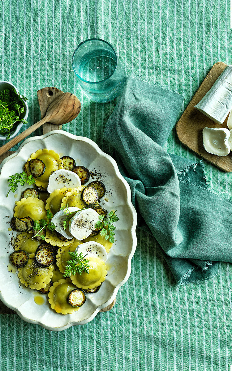 Ravioli Pesto Genovese med getost och grillad zucchini